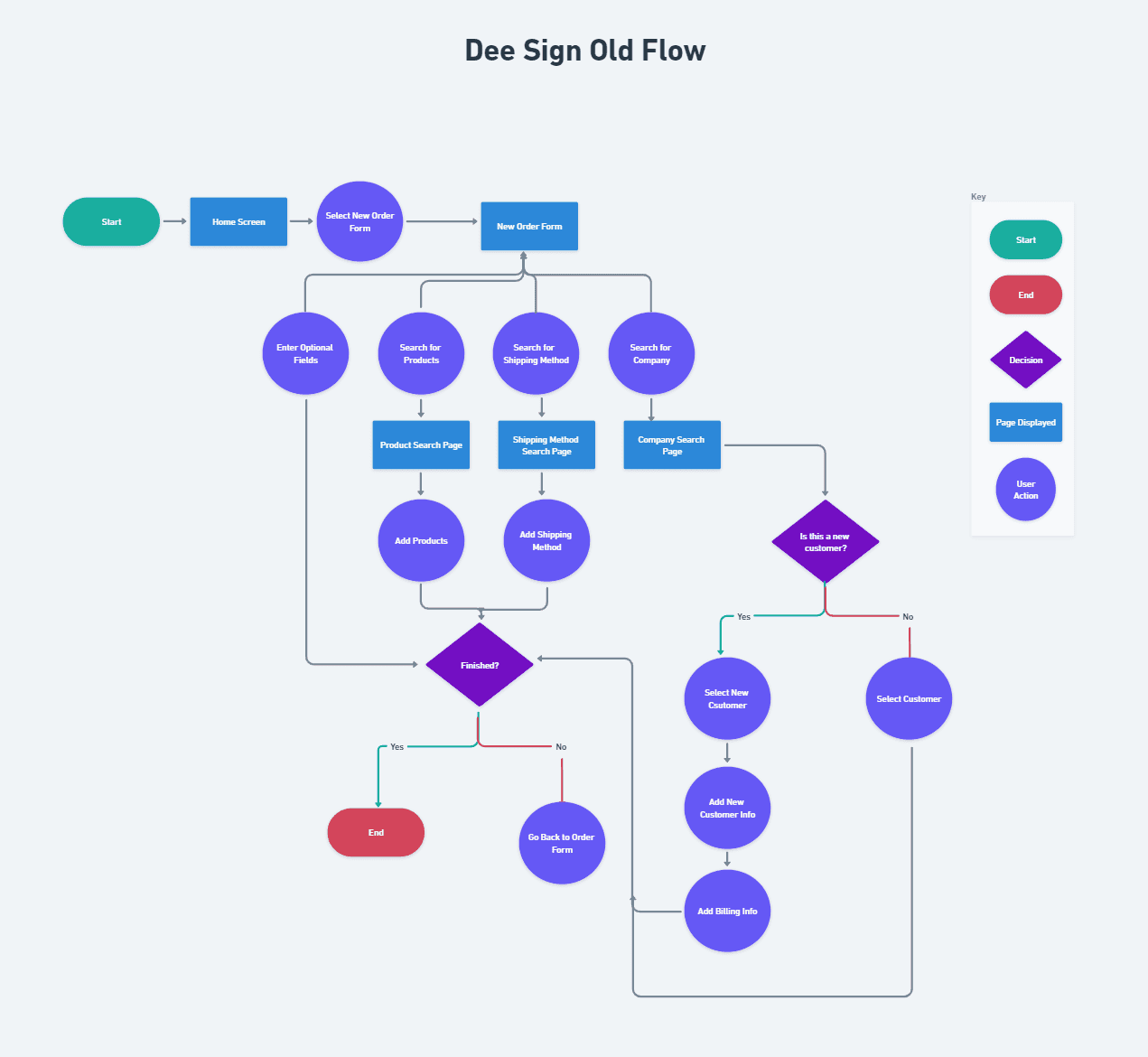 I met with the owner of the company who gave a broad overview of the system I was replacing, and why it needed to be replaced. They stated it was difficult to train new employees on a complicated legacy system that had no documentation, and they wanted to reduce the sales process.